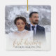 Snyggt fotot julgran dekoration för att fira en ny jul som ett gift par. Utsmyckningen innehåller ett foto med en nyck vit övertäckning och malltext som lyder: "FIRST CHRISTMAS AS MR. AND MRS." och deras efternamn. Teckensnittet stilar och färg kan enkelt ändras genom att klicka på den anpassade länken efter att du har anpassat den.