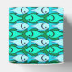 Modern design av stiliserad fisk i mitten av århundradet, alternerande positivt och negativt utrymme - blandad mediegrafik i mörkens skuggor av jade-grönt, akvarier och turkos, accentuerad med svart
