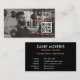 The customizable layout features a bold personal photo on the front and a clean, minimalist back with your contact details and a scannable QR code — ideal for linking to your website, booking page, or social media.