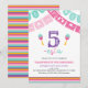 Modern Flerfärgade Flickor Five-esta 5-års inbjudan