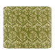 Seamless pattern featuring stylized white umbel flowers and long leaves against a solid olive green background.