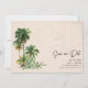 Konstruktionsfoto för Watercolor handflatan träd sparar datumet för ditt målbröllop i Florida! din favoritbild på förlovningen och dina kommande uppgifter om bröllop med familj och vänner med det moderna badbröllopet som sparas datumna.