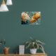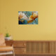 Modern Fluid Abstract Teal Gold Bubbles & Veins Poster