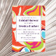 Modern flytande marmor, stil-snurrbakgrund. Orange lila gult retro på färg. Unik formgivning för flytande marmor för inbjudningskort för möhippan. Enkel redigerbar för din personliga text.