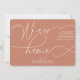 Ett enkelt men vackert sätt att tillkännage ditt drag. Design har en modern rosbakgrund med ett huvud. Det står "Vi har ett nytt hem" i en kombination av trendig typsnitt. Anpassa med adress och namn på framsidan, och på baksidan kan du lägga till ytterligare ett budskap till vänner och familj.