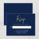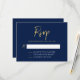 Denna stilrena RSVP (4,25x5,5 tum kort) design har en elegant guldskrift på en marinblå bakgrund. Fler matchande artiklar finns tillgängliga i min butik för att komplettera din bröllopssvit.