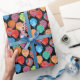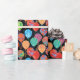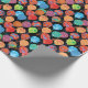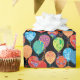 Festila ballonger som dekoreras med färglöst mönster i röda, blå, orange, lila och grönt mot svart bakgrund gör den här inslagna pappra perfekten till en födelsedagspresent.