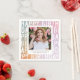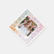 Modern contemporary, grungande fotodekornapkin för födelsedagsfest. Med plats för foto och information. Modern gigantisk rosa, lila, teal, blått, grönt, orange, pastellregnbåge för gult och vit färg kan anpassas till kostym i stil.