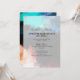 En modern konstnärlig födelsedagsfest inbjudan. Designad med en kreativ abstrakt design. Färgfläckar och virvlande färger i turkos, vit, orange och svart med inslag av blå.