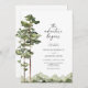 Modern inbjudan till skogsbröllop. Inbjudan ska dina gäster göra en resa in i naturens stora skönhet med våra elegant handmålade bröllopsinbjudningar. Varje kort fångar på ett vackert sätt själva kärnan i en stillastående skog, komplett med lush grönt träd och fantastiska bergsperspektiv. Perfektens val för par att hitta ett unikt och oförglömligt sätt att tillkännage sin speciella dag.
