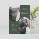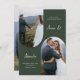 Den här enkla och chic tre fotoarch-grönten med fotografik i skog har en modern minimalistisk utformning med klassisk typografi och modernt skript. Köp den här elegant bröllop-samlingen för att samordna bröllopsinbjudningar och ytterligare alternativ för trendig färg.