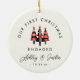 Fira din första jul med vår mysiga berömda träd-ornament! Denna moderna keramiska design ger varma helgdag till träd. Anpassa med anpassningsbar för en speciell, unik beröring!