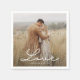 Modern Förlovning Photo Calligraphy Kärlek Napkins har ett foto av förlovningen, tillsammans med namn och ett modernt kalligrafiskript.