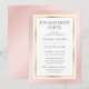 Inbjudan till elegantens rosa och guld förlovningsfest. Anpassa enkelt onlinen. Matchande artiklar som är tillgängliga för att komplettera denna moderna inbjudan till rosa och guld förlovningsfest.