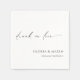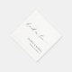 Moderna napkins i bröllop med en enkel och minimal svartvit design med "full i kärlek" i en elegant typografi tillsammans med ett klassiskt typsnitt för serif. Den minimalistiska layouten gör dessa blöjor underbara för ett formellt bröllop, en förlovningsfest eller en möhippa.