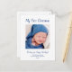 Modern första julklapp i hälsning, med ett sött pojke-tema och anpassadets blå typografiklämtning. Med en fotomall ersätter du med ditt eget baby-foto. Underbar för att meddela ditt nya tillägg till familj och vänner den här julhelgen.