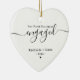 En förlovning i personligen är en julprydnad med anpassningsbar och foto en meningsfull nyckelfråga för par när de firar sin första helgdag engagerad. Den främre designen har en romantisk hjärtform med eleganten "Vår första julfest" i en blandning av flytande skript och klassisk skrivmaskin typsnitt, tillsammans med anpassade namn och år för en tidlös, personlig beröring. Den minimalistiska svarta texten på en skarp vit bakgrund skapar ett modernt men sofistikerat utseende som kompletterar alla Julgran-dekorationer. Lägg till ett favoritfoto av paret på baksidan, skapar det här prydnadsämnet som verkligen är unikt och sentimentalt. Perfekt som en helgdag gåva, jultomtetid för nyligen sysselsatt par eller en tänkvärd present till fästman år efter år, denna prydnadsföremål fångar på ett vackert sätt glädjen i en milstolpe. Ett underbart sätt att fira kärlek, engagemang och början på helgdag tillsammans, är att denna anpassningsbar fotodekoration blir ett dyrt minne biet som kommer att visas för många julklappar till komen.