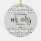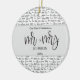 Med modern typografi över ord "Kärlek" anpassar man chicen med efternamnet "Mr och Mrs" för deras första jul. Ord säger "våra första julklappar som Mr. Och Mrs." finns med året. Du kan också byta ut fotot på baksidan mot det nytillkomna fotot från bröllop. Något som i åratal måste omhuldas som en viktig sak för komen.
