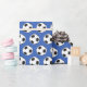 Modern, fotboll, blått, fotboll, ungar, sport, svart och vitt, mönster inslagna pappert. Underbar för födelsedagar.