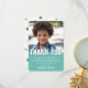 Tacka vänner och familj för att de gjorde ditt barns födelsedag till en speciell tillställning med dessa moderna födelsedagsgratulationskort. Med texten 'TACK' i fet vit skrift med skuggning, ett foto av födelsedagsflickan eller -pojken och ett tackmeddelande som enkelt kan anpassas.
