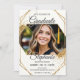 Denna inbjudan till födelsedag och studenten erbjuder en modern, mousserande skönhet med charmerande guld-toner och ett unikt geometriskt mönster. Mottagarens foto från porträtt placeras i ett geometriskt mousserande ram som skapar en framträdande och attraktiv högdager. Detaljerad information om evenemangen presenteras tydligt, vilket gör det lättare för gästerna att ta sig an innehåll.