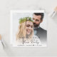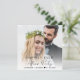 Modern elopement eller bröllopsinbjudan till liten bröllopsfest för att låta familj och vänner veta att du gift dig i en intim bröllopsceremoni och att du nu vill bjuda dem till en bröllopsfest. Framsidan visar ert bröllopsfoto med texten "Happily Ever After Party" i en mix av enkel typografi och ett elegant skrivsätt. Under er bild kan ni lägga till era förnamn och bröllopsdatum. På baksidan kan du anpassa ditt meddelande mer detaljerat och lägga till detaljer om festen eller mottagningen och era namn i ett signatur-liknande skrivsätt.