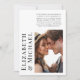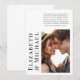 Minimalistisk modern bröllopsannons eller liten bröllopsannons med en efterbröllopsinbjudan med ert foto och era namn i stor fet typografi. Lägg till detaljerna i enkel typografi.