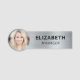 Modern silverfärgad borstad falsk metallisk foto-ID namnskylt. Ladda upp anställdas foto och lägg till deras namn och titel i enkel typografi.
