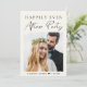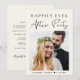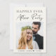 Elegant ljust krämflykt / litet bröllopsmeddelande och mottagning / firande fest inbjudan. Framsidan har din bröllopsfoto och "Happily Ever After Party" i en blandning av enkel typografi och ett chic modernt manus. Under din bild, lägg till dina namn och bröllopsdatum. På baksidan, anpassa ditt meddelande och lägg till fest eller mottagning detaljer och dina namn i ett signaturliknande manus.