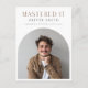 Fira en stolt akademisk milstolpe med detta moderna minimalistiska examenskort med en ren välvbilderlayout och elegant typografi. Designad för examensmeddelanden för magisterexamen och doktorsexamen, är det ett stilrent sätt att dela prestationer med familj och vänner. Anpassa med ett favoritfoto av examen, namn och detaljer för att skapa anpassade examenskort som känns polerade och meningsfulla. Perfekt för fotograderingsmeddelanden med en "klar" -känsla, anpassa ditt idag.