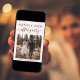 Modern ljusrosa bröllopsflykt eller privat bröllopsanmälan och mottagningsinbjudan. Framsidan visar er bröllopsdagsfoto och "Happily Ever After Party" i en blandning av enkel typografi och ett chic script med svängar. Under er fotot lägger ni er förnamn och bröllopsdatum. På baksidan anpassar ni er bröllopsanmälan och mottagningsinbjudan, anger er bröllopswebbadress för att skapa en QR-kod som gästerna kan skanna för att se era bröllopsfoton, alla detaljer och svara online, och lägger till era namn i ett signaturliknande script.