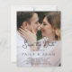 Modern redaktionell stil bröllop spara datum med fet typografi över ditt favoritfoto. En ren och enkel design för ett bröllop under vilken tid på året som helst.