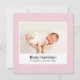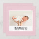 personlig med kort för födelseanmälan i flicka med foto, namn, födelsestatus och anpassningsbar på baksidan. Rosa design med en modern, kontrollerad bakgrund av mönster.