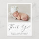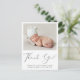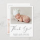 Modern och enkel födelseannons för flicka eller pojke med ditt nyfödda barns foto och "Tack" i ett elegant samtida skrivstil med en hjärtsvans. Anpassa med barnets fullständiga namn, ankomst datum och födelse statistik i modern typografi. På baksidan kan du lägga till ett extra foto och din anpassade annons och tack meddelande.