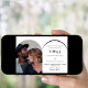 En inbjudan till fotoarch-bröllop på framsidan: Lägg till ditt eget lodrät storlekt foto. En vit chic, svart text. Anpassa och lägg till namn och information. Tillbaka: Du kan lägga till mer text om du vill. Gå in i designen verktyg och lägg till på baksidan av lagrar.