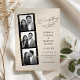 Denna moderna men ändå eleganta spara-datum-kort har en filmremsa fotofram med 3 bilder och en script hälsning som säger "Vi gifter oss!" på framsidan. Utseendet är modernt och roligt, men fortfarande elegant. Alla bakgrundsfärger, skript och textfärger är anpassningsbara. *Om din bild är i färg och du vill att den ska vara svart-vit, använd helt enkelt bildfilter i redigeringsverktyget.