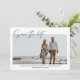 Modern bröllop spara datum för ditt badbröllop i en handskriven manusdesign som innehåller ett favoritfoto från dina förlovningar. Ladda upp fotot och anpassa framsidan med kommande information om bröllop.