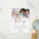 Tack för modern fotobeläggning bröllopsfest. En informell typsnittsstil i svart för huvudet Tack som kompletterar resten av texten som du enkelt kan anpassa. Byt ut exempelbilden med din egen favorit från tillfället.