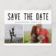 Dessa postkort med datum för bröllop är för det roliga paret som inte kan vänta med att dela med sig av datumet för sitt bröllop till familj och vänner. Modern svart-vit "spara datum"-typografi på framsidan av postkortet är anpassad med två av dina foton. Lägg till din returadress och kommande information om bröllopet på baksidan.