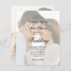 Elegantens inbjudan till fotobudgetbröllop med ett modernt typsnitt och två foton.