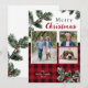 Buffalo plaid, snö och vintergrönt julkort för helgdag. Personlig enkelt med dina foton och namn! Ytterligare text kan läggas till på baksidan.