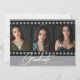 Fira studenten i stil med detta unika filmtematiska meddelande! Den här designen har en snygg bakgrund i grått och klassisk svartvit text och lyfter fram tre av dina favoritfoton som ramats in i en filmremsa - perfekt för att visa resan. Baksidan fortsätter temat elegant samtidigt som du delar all information om studenten. Perfekt för filmbuffs och fotografering älskare, det här meddelandet fångar ditt stora ögonblick med tidlös flust. Skapat av Farmhouse Press. Om du vill ha anpassningsbar delarare eller om du vill begära en produkt som inte finns i vår butik kan du skicka e-post till simplyfarmhousepress@gmail.com.