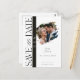Dela dina glada nyheter med detta vackra "Save the Date"-kort, designat för att visa din kärlekshistoria. Den eleganta typsnittet för namnen och frasen "Save the Date" utstrålar romantik och sofistikation. Ett särskilt utrymme finns för ett älskat foto, vilket gör varje kort unikt och personligt. Detta vykort är ett perfekt sätt att informera dina gäster om datum och plats för din bröllop på ett sätt som speglar ditt speciella tillfälle. Den rena designen och det klassiska uttrycket säkerställer att det blir en minnessak.