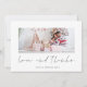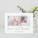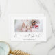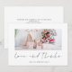 Modern Fotojul, Kärlek och tack. En snyggt ställer in handskript för stil för Kärlek och Tack och anpassar sig till namn och meddelandet på baksidan. Byt ut exempelfotot mot din egen favorit.