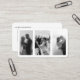 Öka nätverken med det här moderna fotot-affärskortet med en QR-anpassningsbar. Designat i en elegant minimalistisk layout kombinerar kortet stil och funktion - vilket gör att du kan visa tre foton på framsidan samtidigt som du håller kontaktuppgifterna tydliga och professionell på baksidan. Den inbyggda QR-koden gör det enkelt för kunder att omedelbart få tillgång till din webbplats, portfölj eller social-media. Perfekt för fotografer, äkta gods agent, kreativ, skönhetsvårdande professioneller, bröllopsfixararna och småföretagsägare, det här affärskortet i anpassadet ser till att du får ett varaktigt intryck. Anpassa med dina egna foton, namn, jobbtitel och kontaktuppgifter för att skapa ett unikt kort som verkligen representerar ditt varumärke.