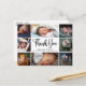 Modern Fotokollage Födelseannons Postkort. Design med tackskrift, 8 bilder på barnet, födelseinformation, datum och namn på framsidan. Anpassa med ditt tackmeddelande på baksidan.