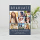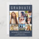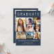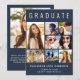 Elegant mörkblå examensannonsering för att fira examen med "EXAMEN" överst i stor vit typografi, en kollage med sju foton och hans eller hennes namn, klassår och skola i modern vit typografi. På baksidan läggs ett extra foto till och ett anpassat meddelande.