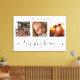 Den här fantastiska kanvas-väggkonsten har ett vackert fotokollage med tre ram som visar omhuldade minnen, med det hjärtliga meddelandet "Låt oss stanna hemma". Den svarta och vita eleganten skapar tillsammans med utsökt skript och trycktypografi ett sofistikerat och hållbart biet som kompletterar alla insida stil. Anpassa det till din familj namn. Skapat av Farmhouse Press.