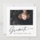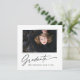 Modern och elegant fyrkantig designad studenten-meddelandekort, som innehåller inslag av modern text med calligraphy bläck-skript. Student bild på kortets framsida accentueras med en delikat och minimalistisk övertoningsmarkör. Kortets baksida ger personlig textutrymmen för information om studenten eller kan raderas om du vill skicka ett meddelande till skrivan. Svartvit eller anpassa bakgrunden så att den passar din skolas primära färg eller valfritt färg. Perfekt för högskolan, högskolan och universiteten grad student.