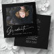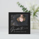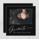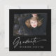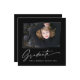 Modern och elegant fyrkantig designad studenten-meddelandekort, med inslag av modern text med calligraphy bläck-skript i vitt för mörkare bakgrundsalternativ i färg. Student bild på kortets framsida accentueras med en delikat och minimalistisk övertoningsmarkör. Kortets baksida ger personlig textutrymmen för information om studenten. Svartvit eller anpassa bakgrunden så att den passar din skolas primära färg eller valfritt färg. Perfekt för högskolan, högskolan och universiteten grad student.